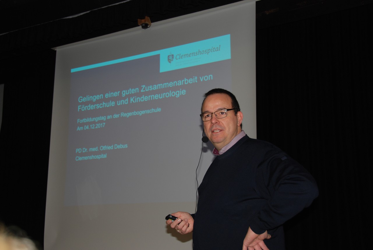 Wichtige Impulse zu geben für die schulische Arbeit – dieses Ziel des Fortbidungstages am 04.12.17 wurde voll erreicht: Der sehr gelungene Einstiegsvortrag durch Dr. Otfried Debus vom Clemenshospital zum “Gelingen einer guten Zusammenarbeit von Förderschule und Kinderneurologie“ und die daran anschließenden Workshops haben den Teilnehmer*innen viel Wissen und Kompetenzen vermitteln können.
